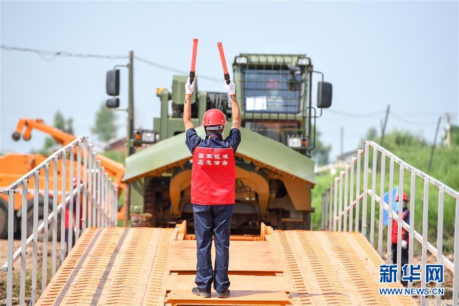 7月10日,工作人員引導(dǎo)多功能應(yīng)急搶險車安全過橋。當(dāng)日,由吉林省交通運輸廳主辦的公路橋梁水毀搶通應(yīng)急演練在長春市雙陽區(qū)雙陽河舉行,參與演練人員從汛情水毀信息報送、應(yīng)急裝備快速集結(jié)、機械化橋梁搶通搭設(shè)、善后處理等方面進行實戰(zhàn)演練。新華社記者張楠攝