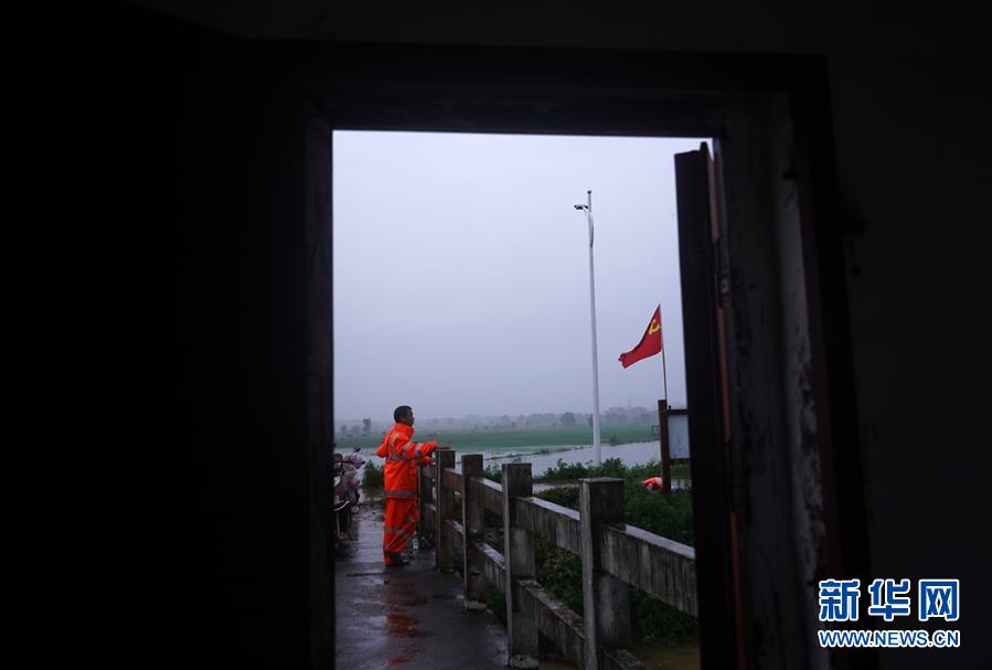 7月9日,邵忠如冒雨夜巡圩堤。新華社記者萬象攝
