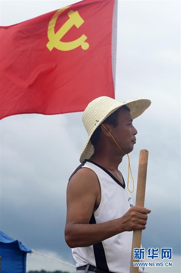 7月9日,邵忠如在圩堤上觀察水情。新華社記者萬象攝