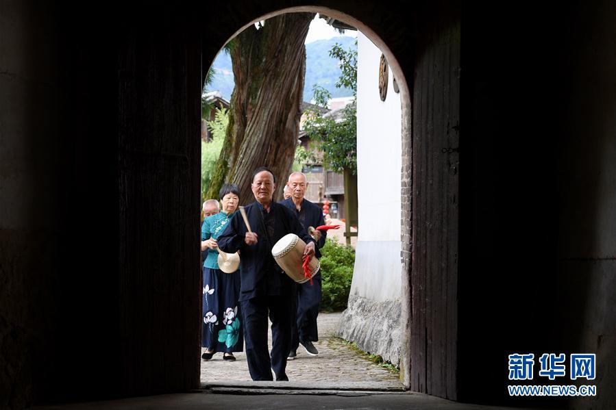7月4日,浦源村民展示魚(yú)祭習(xí)俗。魚(yú)祭習(xí)俗是為死去的鯉魚(yú)舉行送葬儀式,是浦源村特有的習(xí)俗。新華社記者 姜克紅 攝