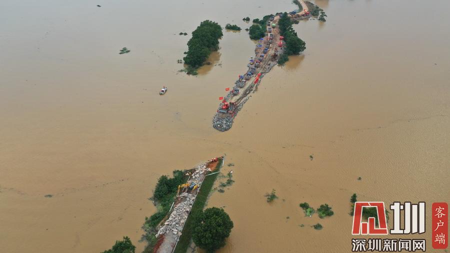 江西鄱陽縣問桂道圩漫決口 封堵進入最后攻堅階段