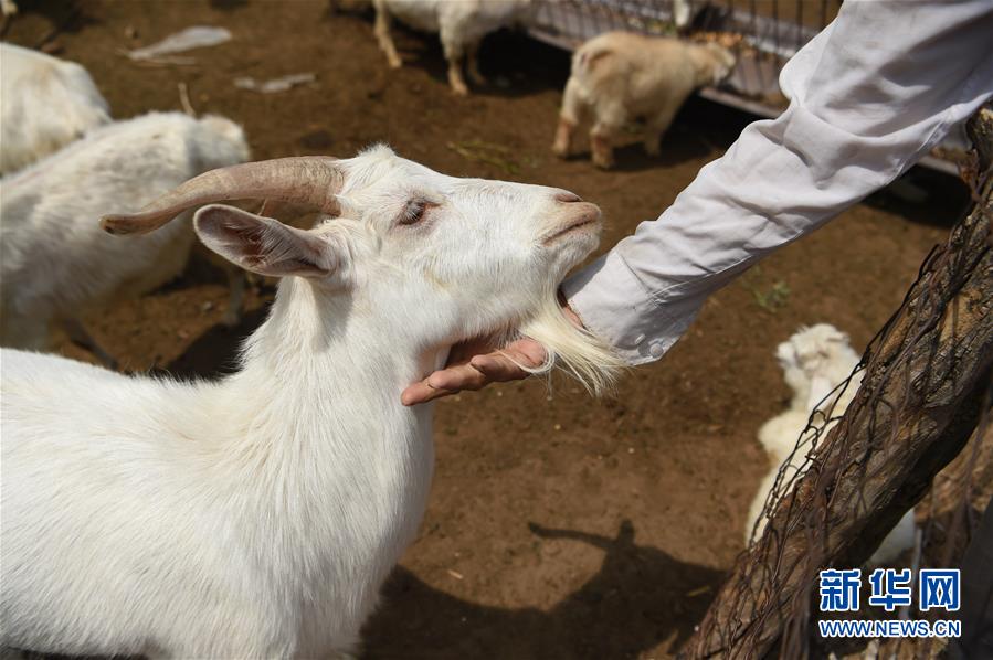 7月14日,高二仁看著自家養(yǎng)的羊露出笑容。新華社記者 李志鵬 攝