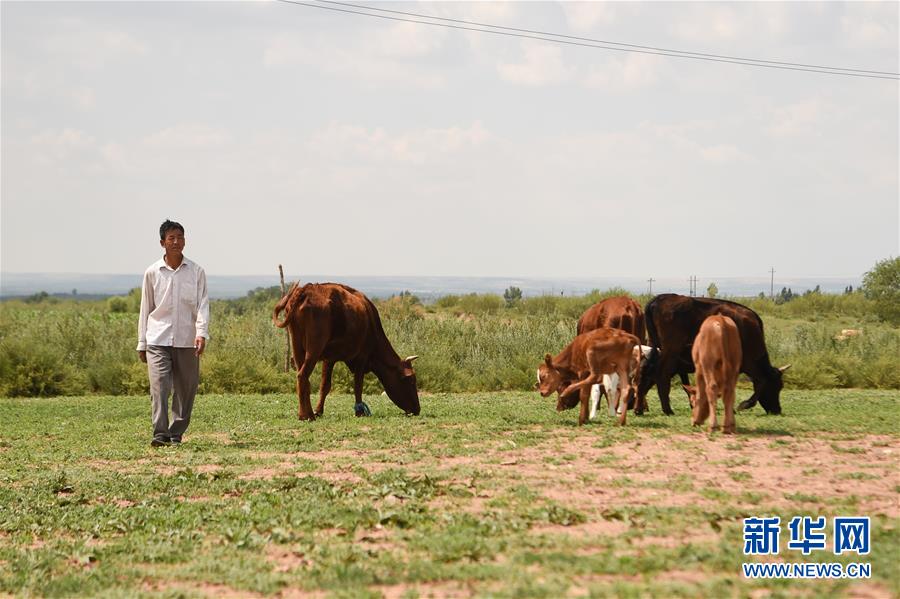 7月14日,高二仁在草地上放牛。新華社記者 李志鵬 攝