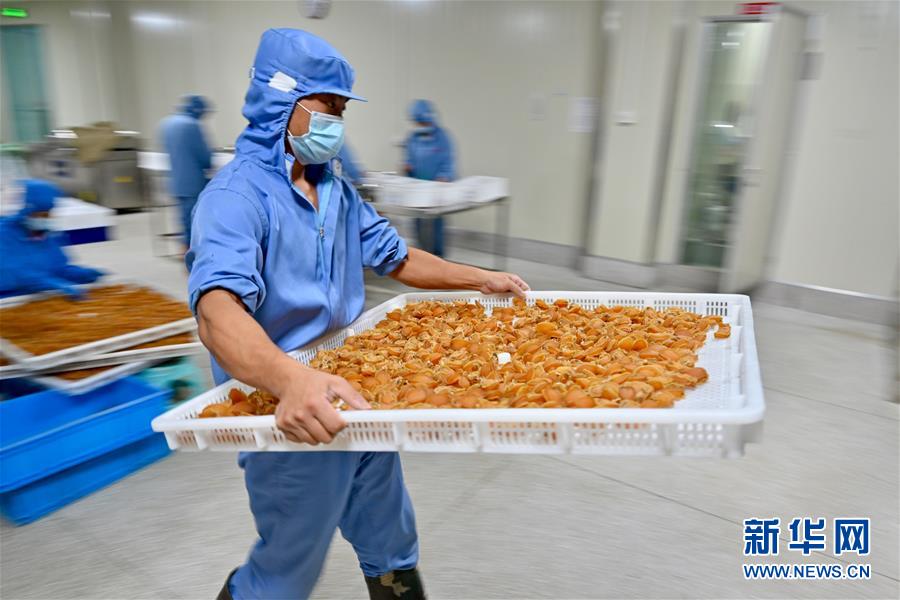 7月14日,福建省連江縣一家鮑魚加工企業(yè),工人在搬運鮑魚產品。新華社記者 姜克紅 攝