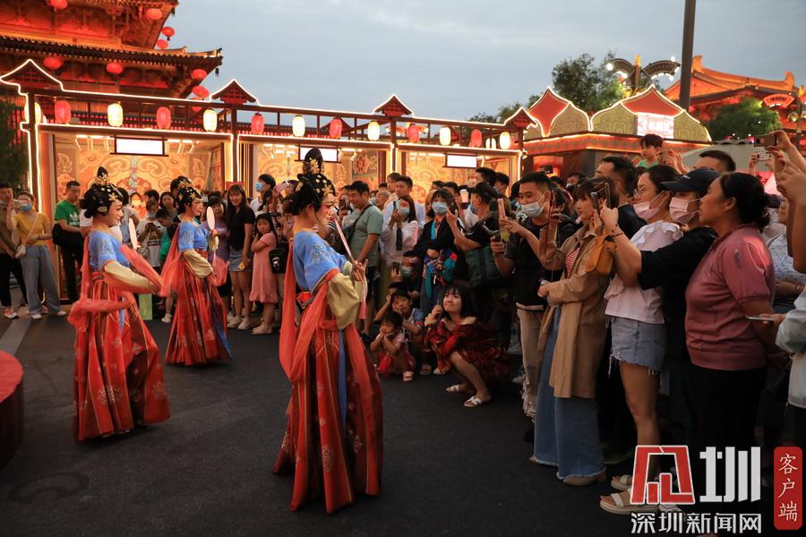 2020年7月14日,西安大唐不夜城游人如織,“煙火氣”十足,特色美食、樂(lè)隊(duì)駐唱、花車夜游等內(nèi)容,吸引著市民和各地游客“打卡”。昔日看夜景、品美食、夜購(gòu)物等場(chǎng)景,又在這條步行街被重新“點(diǎn)燃”。