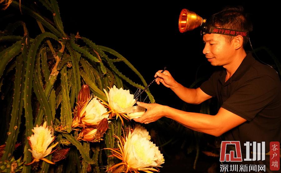 廣西融水:火龍果果農(nóng)夏夜“點花”忙