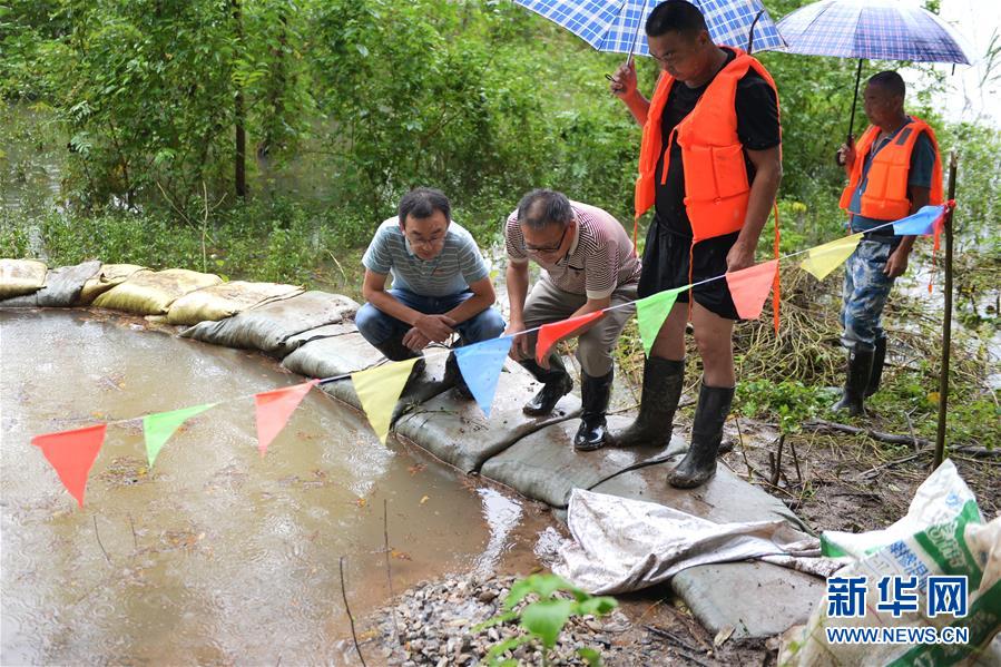 7月13日晚,樅陽(yáng)縣水利局高級(jí)工程師舒曉安(左一)在處置圩堤突發(fā)險(xiǎn)情。受長(zhǎng)江持續(xù)高水位影響,安徽省樅陽(yáng)縣的鐵銅鄉(xiāng)江心洲已于近日將江心洲上的居民轉(zhuǎn)移安置,而包括搶險(xiǎn)隊(duì)員、鄉(xiāng)鎮(zhèn)干部、水利工程師等在內(nèi)的近300人“留守”在江心洲上巡堤查險(xiǎn),守護(hù)家園。鐵銅鄉(xiāng)位于長(zhǎng)江江心洲上,有4個(gè)行政村52個(gè)村民組,耕地面積12000多畝。新華社發(fā)