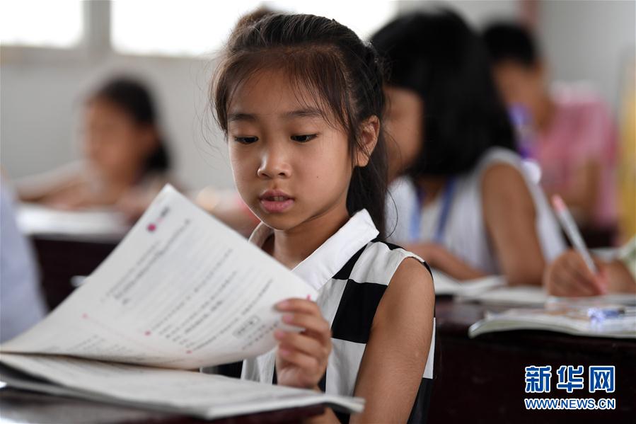 7月16日,在安徽省宿松縣洲頭鄉(xiāng)中心小學(xué)集中安置點,小朋友在做暑假作業(yè)。新華社記者劉軍喜攝