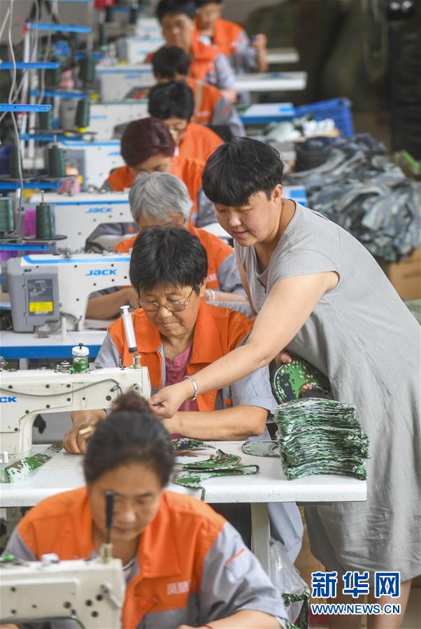7月16日,在河北省深州市高古莊鎮(zhèn)鳳凰池村扶貧車間,馬京娜指導車間工人加工帽子。馬京娜是河北省深州市高古莊鎮(zhèn)鳳凰池村的致富能手。在市、鄉(xiāng)、村各級部門的大力支持下,馬京娜創(chuàng)辦扶貧車間,為建檔立卡貧困戶設立崗位,帶領貧困戶脫貧增收。目前,馬京娜的扶貧車間提供就業(yè)崗位30多個。新華社記者李曉果攝