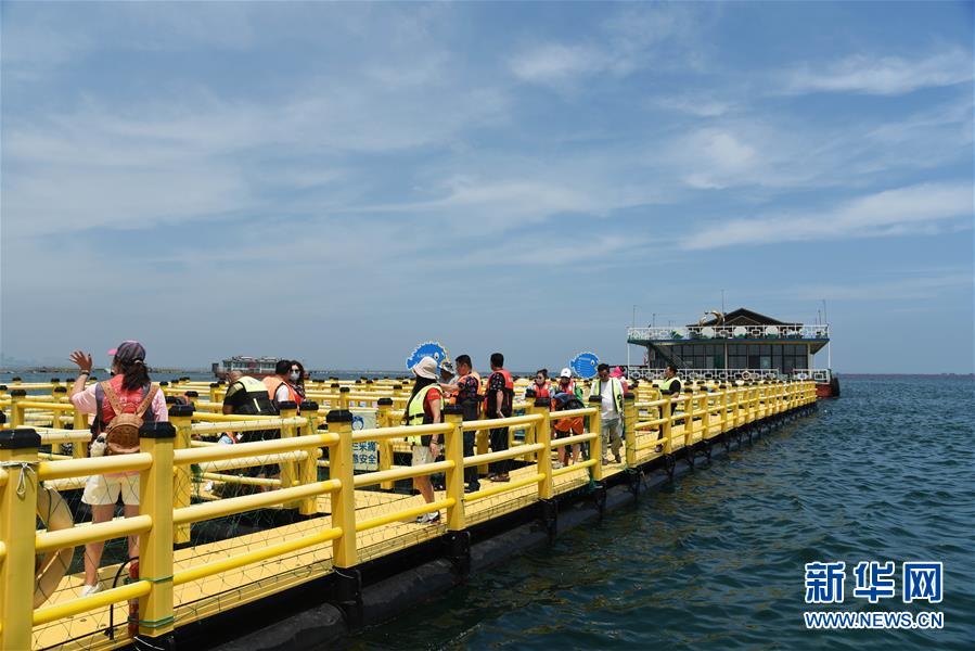 7月17日,游客在榮成桑溝灣泓泰國家級海洋牧場觀光體驗。近年來,山東省榮成市重點發(fā)展特色海洋旅游產(chǎn)業(yè),打造眾多國家級海洋牧場,保留修復傳統(tǒng)海草民居,吸引游客前來觀光體驗。如今特色海洋旅游已逐漸成為榮成經(jīng)濟發(fā)展新的增長點。新華社記者王凱攝
