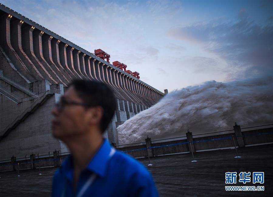 7月19日,工作人員在三峽樞紐前巡查。19日20時(shí),三峽水庫(kù)入庫(kù)流量4.6萬(wàn)立方米/秒,較本輪洪水的峰值6.1萬(wàn)立方米/秒下降了1.5萬(wàn)立方米/秒。“長(zhǎng)江2020年第2號(hào)洪水”平穩(wěn)通過(guò)三峽大壩。新華社記者肖藝九攝