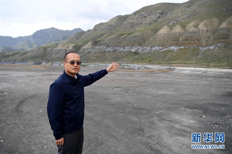 7月16日,烏魯木齊市生態(tài)環(huán)境局烏魯木齊縣分局局長嚴偉濤介紹一家企業(yè)的礦坑被回填的情況。新華社記者沙達提攝