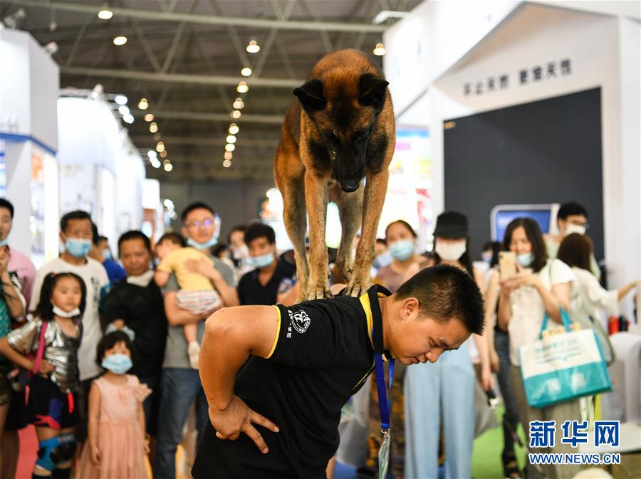 7月19日,在成都世紀(jì)城新國際會展中心,一家寵物學(xué)校的馴導(dǎo)師在表演馴犬。當(dāng)日,第九屆成都國際寵博會進(jìn)入最后一天。此次展會展出面積30000平方米,匯聚國內(nèi)外品牌企業(yè)和產(chǎn)品,覆蓋中西部地區(qū)寵物行業(yè)食品、用品、醫(yī)療和服務(wù)等領(lǐng)域。新華社記者王曦攝
