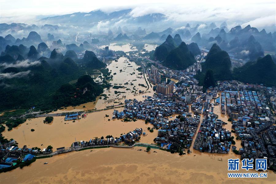 7月11日在廣西柳州市融水苗族自治縣拍攝的融江(無人機(jī)照片)。受連日強(qiáng)降雨影響,廣西柳州市融水苗族自治縣融江出現(xiàn)超警戒水位。新華社記者黃孝邦攝