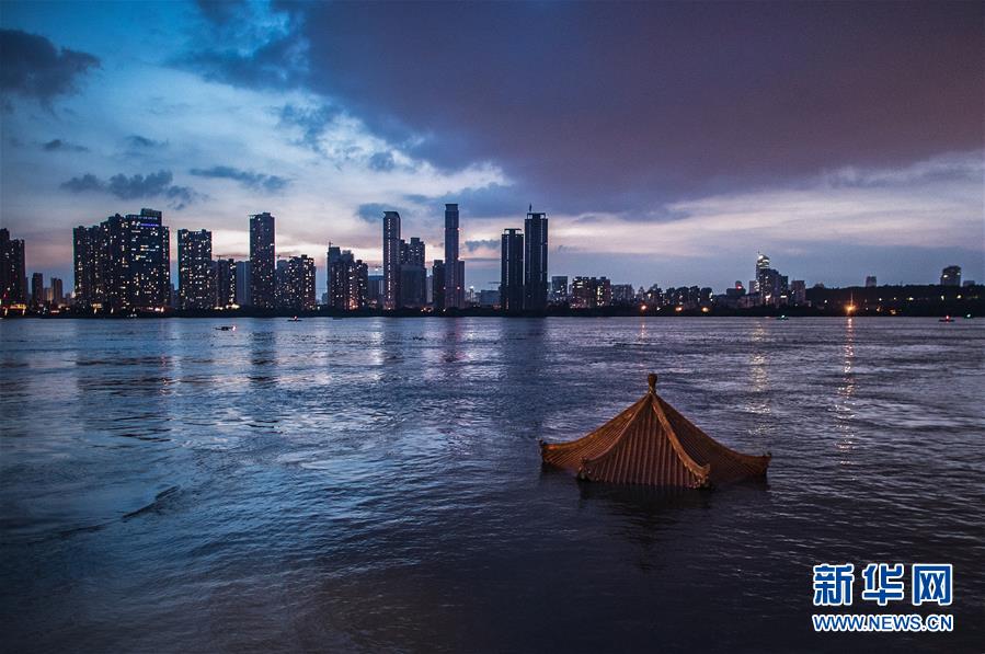 上漲的江水即將淹沒武昌黃花磯涼亭(7月13日攝)。7月13日17時(shí),長(zhǎng)江干流漢口站水位達(dá)28.74米,較之前的洪峰水位28.77米出現(xiàn)輕微下降。長(zhǎng)江中下游洪水洪峰順利通過漢口江段。新華社記者肖藝九攝