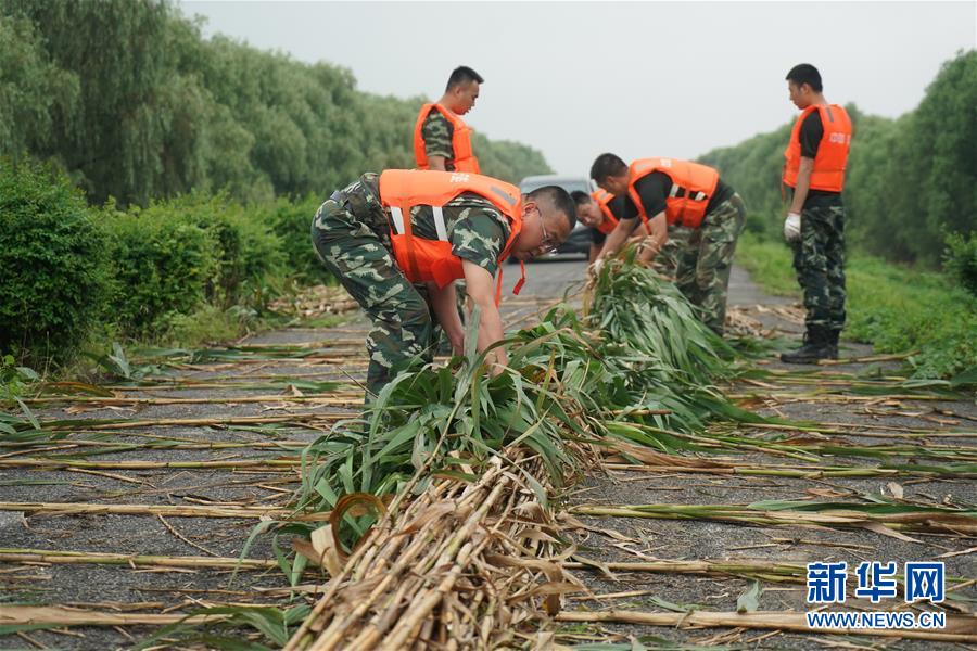 在鎮(zhèn)江市丹徒區(qū)世業(yè)鎮(zhèn)先鋒村西南大堤,中國安能集團(tuán)第二工程局常州分公司防汛前置備勤隊(duì)員準(zhǔn)備將捆好的蘆葦放在江堤邊(7月17日攝)。捆蘆葦護(hù)邊坡、機(jī)器人進(jìn)涵洞、“養(yǎng)水盆”防滲漏……在江蘇鎮(zhèn)江,當(dāng)?shù)馗刹咳罕姾蛯I(yè)力量,因地制宜就地取材,老辦法搭配新技術(shù),一批險(xiǎn)情得以消除在萌芽狀態(tài)。新華社記者季春鵬攝
