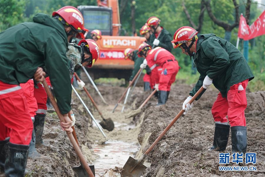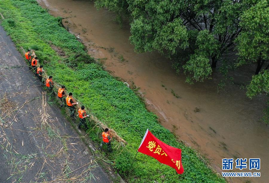在鎮(zhèn)江市丹徒區(qū)世業(yè)鎮(zhèn)先鋒村西南大堤,中國安能集團(tuán)第二工程局常州分公司防汛前置備勤隊(duì)員在捆蘆葦護(hù)邊坡(7月17日攝)。捆蘆葦護(hù)邊坡、機(jī)器人進(jìn)涵洞、“養(yǎng)水盆”防滲漏……在江蘇鎮(zhèn)江,當(dāng)?shù)馗刹咳罕姾蛯I(yè)力量,因地制宜就地取材,老辦法搭配新技術(shù),一批險(xiǎn)情得以消除在萌芽狀態(tài)。新華社記者季春鵬攝
