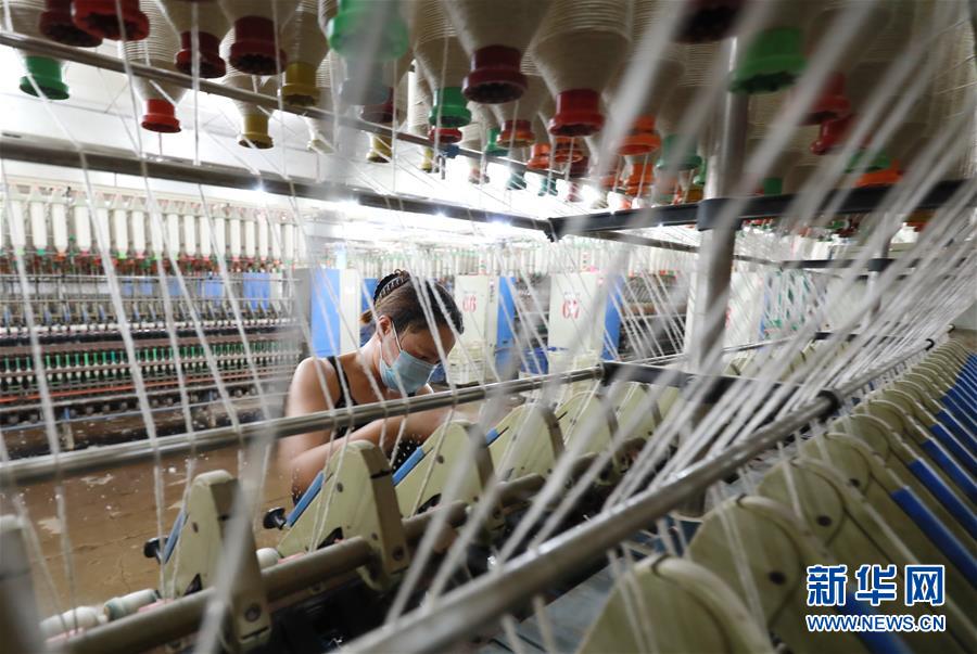 7月20日,工人在灤南縣長凝鎮(zhèn)的一家紡織廠生產(chǎn)車間里工作。近年來,河北省灤南縣大力發(fā)展村邊民營企業(yè),引導(dǎo)企業(yè)在鄉(xiāng)鎮(zhèn)村邊建廠,帶動(dòng)當(dāng)?shù)?萬多名農(nóng)村群眾在村邊就近就業(yè),實(shí)現(xiàn)穩(wěn)步增收。新華社記者楊世堯攝
