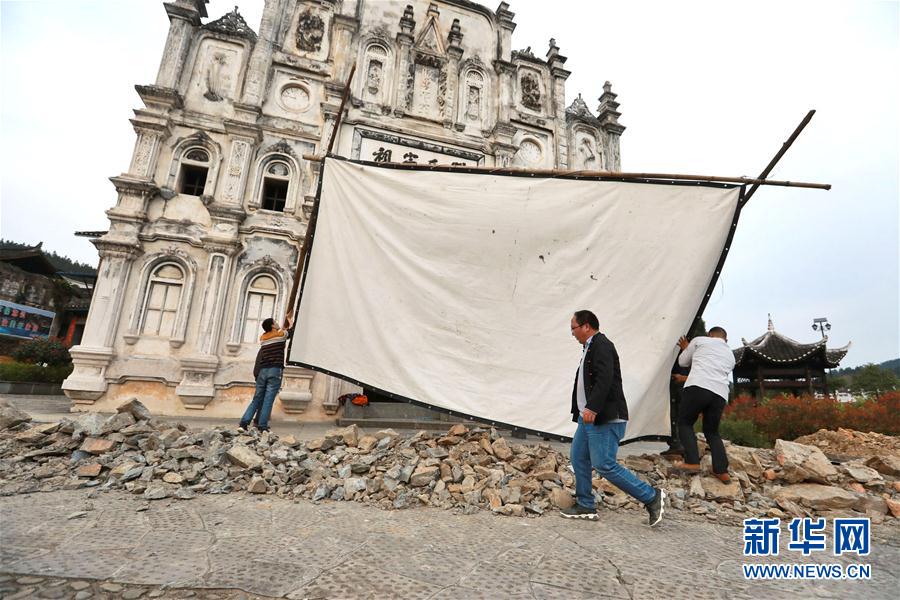 2019年3月19日,在天柱縣坌處鎮(zhèn)三門塘村,黃宜?。ㄖ校┰诖罱娪安シ拍徊肌6弊迩嗄挈S宜印是貴州省黔東南苗族侗族自治州天柱縣的一名公益電影放映員。從2014年起,他常年行走在大山里,為山區(qū)群眾播放電影。僅2018年,黃宜印就在天柱縣的37個(gè)村寨播放電影444場。新華社記者歐東衢攝