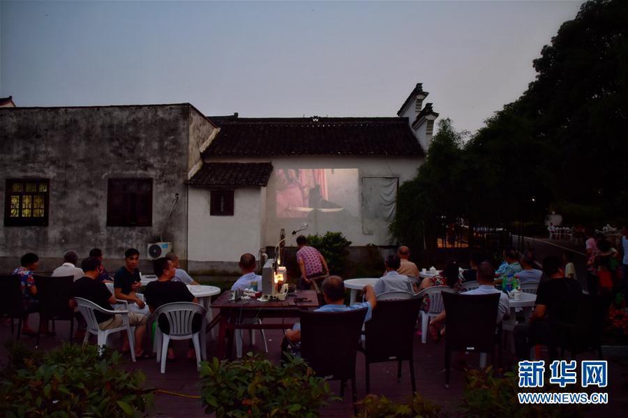 2020年6月30日,浙江嘉興桐鄉(xiāng)市洲泉鎮(zhèn)馬鳴村村民自發(fā)圍坐在廣場觀看電影。在浙江嘉興桐鄉(xiāng)市洲泉鎮(zhèn)馬鳴村,王志華、朱文炳、朱生榮、朱強(qiáng)四代電影放映員,“接力”放映電影五十余年。新華社記者鄭夢雨攝