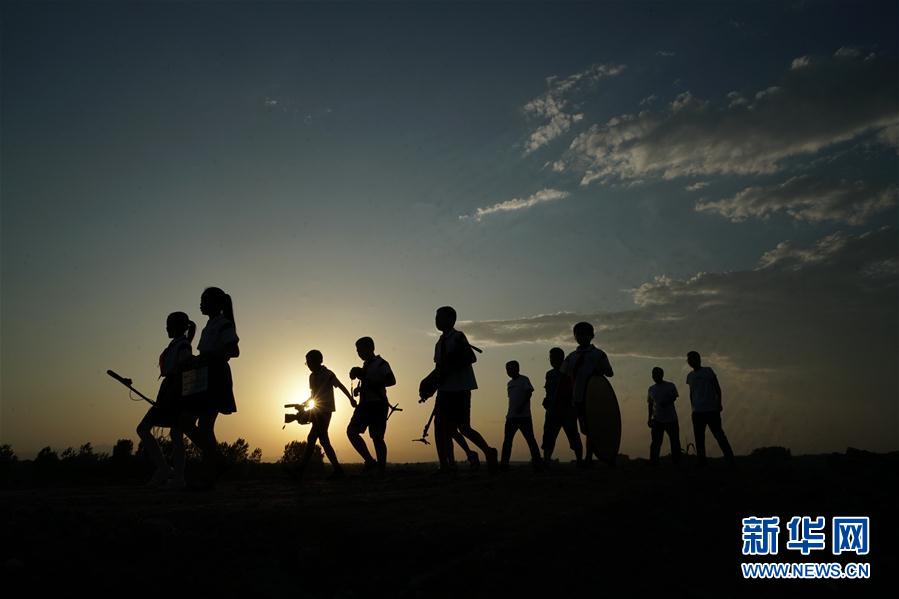 2019年8月15日,《向陽而生》攝制組完成一天的拍攝,行走在返回學(xué)校的途中。新華社記者牟宇攝