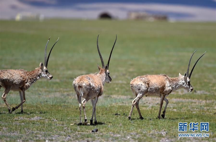 7月18日在西藏尼瑪縣榮瑪鄉(xiāng)附近拍攝的藏羚羊。2000年,西藏羌塘自然保護(hù)區(qū)晉升為國(guó)家級(jí)自然保護(hù)區(qū)。20年來(lái),經(jīng)過(guò)西藏各級(jí)各部門(mén)的不懈努力,羌塘國(guó)家級(jí)自然保護(hù)區(qū)內(nèi)的重點(diǎn)保護(hù)野生動(dòng)物種群數(shù)量明顯增加,其中,藏羚羊種群數(shù)量由原來(lái)的5至7萬(wàn)只,恢復(fù)到目前的15萬(wàn)只以上。羌塘國(guó)家級(jí)自然保護(hù)區(qū)核心地帶的西藏尼瑪縣榮瑪鄉(xiāng)附近,目前就有近6萬(wàn)只藏羚羊。新華社記者覺(jué)果攝