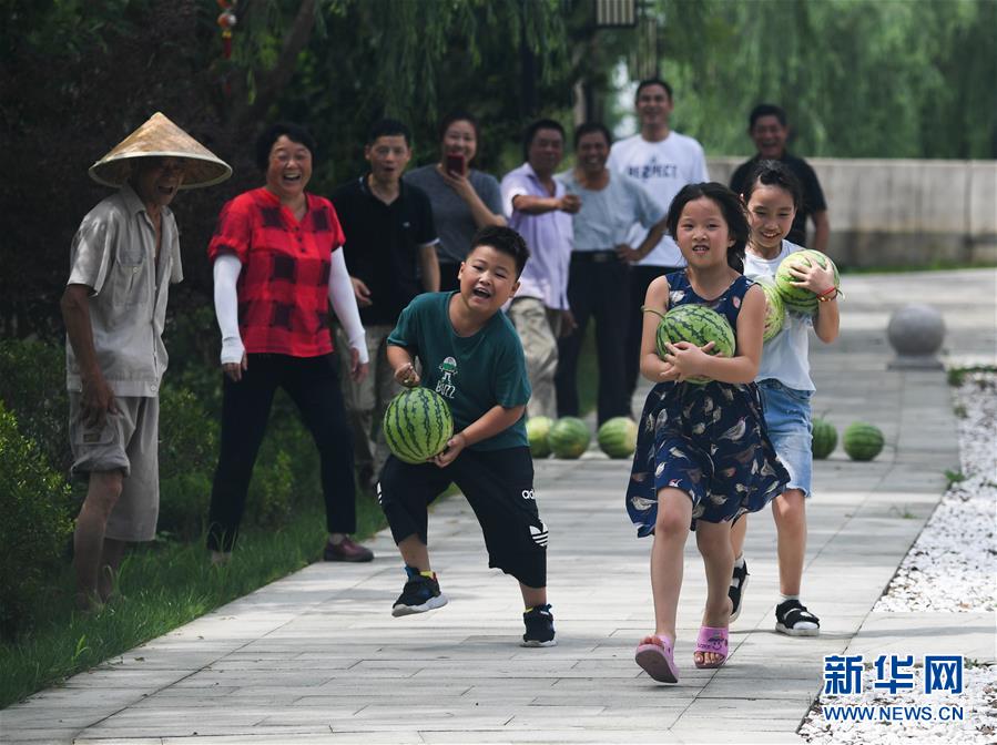 7月22日,廟兜村的孩子們在參加運西瓜比賽。當日是大暑節(jié)氣,浙江省湖州市吳興區(qū)織里鎮(zhèn)廟兜村舉行了趣味“賽西瓜”比賽,迎接這個“火熱”的節(jié)氣。廟兜村種植有500多畝西瓜,目前正值西瓜豐收的時節(jié),村民們用“賽西瓜”的形式,感受豐收的喜悅。新華社記者徐昱攝