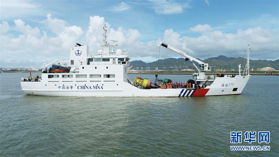 “海巡173輪”在試航(資料圖片,無人機(jī)照片)?!昂Q?73輪”7月22日正式列編交通運(yùn)輸部南海航海保障中心廣州航標(biāo)處。這艘排水量2228噸的大型航標(biāo)工作船是中國交通運(yùn)輸系統(tǒng)南海海區(qū)裝備最先進(jìn)的船,將用于粵港澳大灣區(qū)和南海海區(qū)水上浮標(biāo)的布設(shè)和維護(hù)。新華社發(fā)