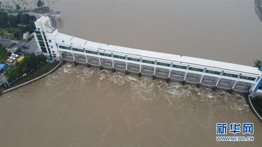 這是7月23日在安徽省阜南縣拍攝的正在關閘的淮河王家壩閘(無人機照片)。當日13時,淮河干流王家壩閘關閘,停止向蒙洼蓄洪區(qū)泄洪。新華社記者張端攝