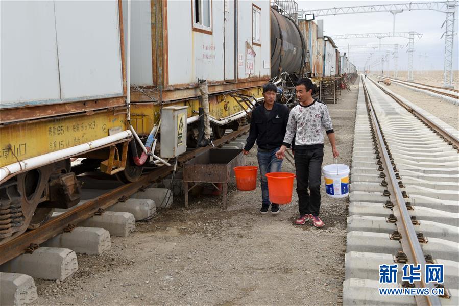 中鐵一局的施工人員打完水返回宿舍(7月19日攝)。新華社記者 丁磊 攝
