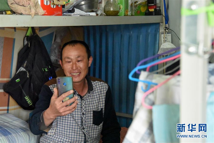 中鐵一局的施工人員在“白皮列車”內與家人聯(lián)絡(7月19日攝)。新華社記者 丁磊 攝