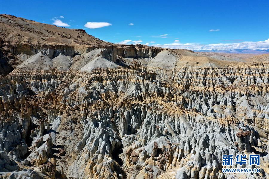 這是7月26日在西藏阿里地區(qū)札達縣托林鎮(zhèn)拍攝的札達土林(無人機照片)。札達土林位于西藏阿里地區(qū)札達縣境內,千姿百態(tài)的土林與藍天、白云相互映襯,景色壯美。新華社記者 詹彥 攝