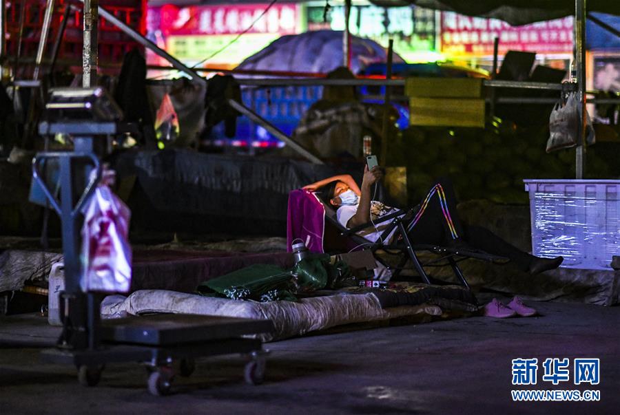 7月26日,在烏魯木齊新聯(lián)農(nóng)副產(chǎn)品綜合市場內(nèi),一位商販在躺椅上休息。新華社記者 趙戈 攝