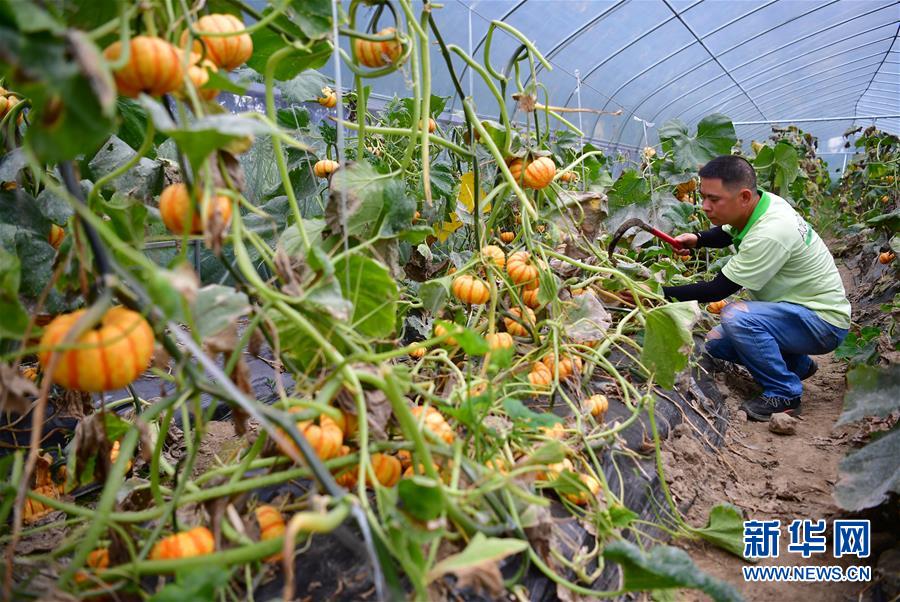 7月24日,在陜西漢陰縣澗池鎮(zhèn)紫云南郡易地扶貧搬遷安置社區(qū)配套的農(nóng)業(yè)產(chǎn)業(yè)園內(nèi),社區(qū)居民唐文斌在管護(hù)大棚南瓜。陜南地區(qū)地處秦巴山區(qū),是陜西脫貧攻堅(jiān)的主戰(zhàn)場(chǎng)。近年來,陜南各縣區(qū)因地制宜、精準(zhǔn)施策,通過發(fā)展社區(qū)工廠、特色種植、旅游扶貧、技能培訓(xùn)、電商帶貨等措施,促進(jìn)多種產(chǎn)業(yè)發(fā)展,助力農(nóng)民增收。新華社記者邵瑞攝