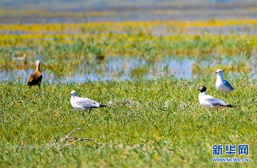 7月28日,灰雁和遺鷗在桃力廟—阿拉善灣海子覓食。鄂爾多斯?jié)竦匚挥趲觳箭R沙漠、毛烏素沙地接壤地帶,2002年被列入國際重要濕地名錄。從2006年開始,由于濕地湖面萎縮、湖心島消失,在此筑巢繁殖的世界瀕危物種遺鷗幾近消失。近年來,當?shù)夭扇《喾N治理措施,濕地生態(tài)環(huán)境逐步好轉。2019年起,濕地內(nèi)的桃力廟—阿拉善灣海子迎來遺鷗大規(guī)模“回歸”。如今,40多種鳥類在此棲息,鄂爾多斯?jié)竦刂匦鲁蔀轼B類的樂園。新華社記者彭源攝