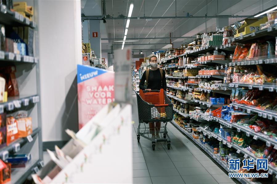 7月29日,一名戴口罩的顧客在比利時(shí)布魯塞爾一家超市采購。為應(yīng)對近期有所抬頭的疫情,比利時(shí)政府決定收緊相關(guān)防控措施,包括從7月29日至8月底一個(gè)家庭能密切接觸的親友人數(shù)將由過去的最多15人減至5人;大型活動(dòng)的人數(shù)限額減半;婚禮、宴會(huì)等私人聚會(huì)最多不超過10人等。新華社記者張鋮攝