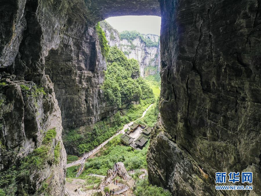 7月29日,游客在天生三橋景區(qū)內(nèi)的天龍橋景點(diǎn)游覽。夏日時(shí)節(jié),世界自然遺產(chǎn)地重慶武隆天生三橋景區(qū)風(fēng)景如畫,氣勢(shì)磅礴的天生石橋和綠意盎然的山林相映成趣,吸引眾多游客前來(lái)觀光。新華社記者劉潺攝