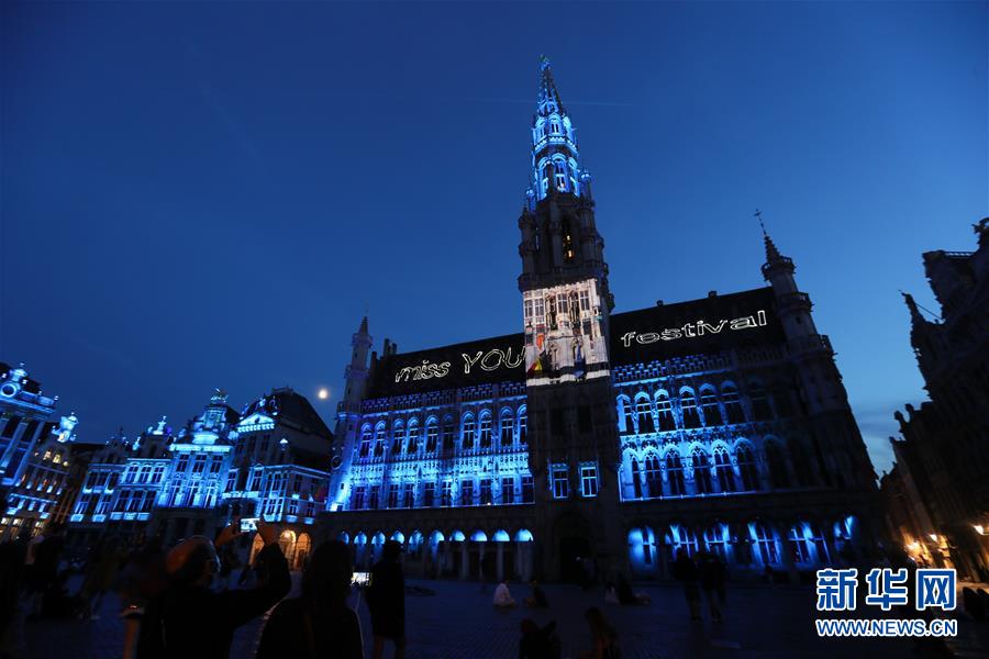 7月29日,比利時(shí)布魯塞爾大廣場(chǎng)的市政廳外墻上投射出“想念你,節(jié)日”的字樣。7月29日,比利時(shí)布魯塞爾大廣場(chǎng)舉行大型聲光秀。藝術(shù)家在市政廳等歷史建筑上投影文字和圖案,紀(jì)念這個(gè)夏天受新冠疫情影響而不能如期舉辦的文化活動(dòng)。新華社記者鄭煥松攝