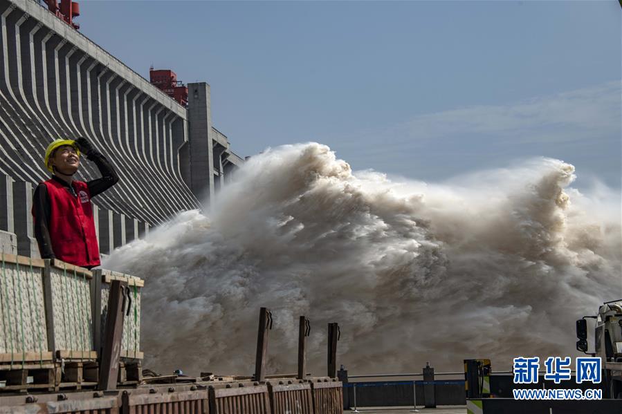 三峽樞紐工程開啟泄洪深孔泄洪(7月31日攝)。新華社記者杜華舉攝