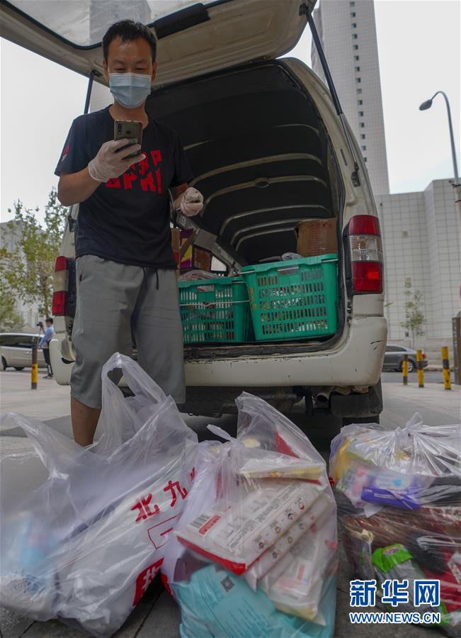 7月30日,在烏魯木齊經(jīng)濟技術開發(fā)區(qū)(頭屯河區(qū))萬達華府小區(qū),商販打電話告知住戶訂購的商品已經(jīng)送達。新華社記者趙戈攝