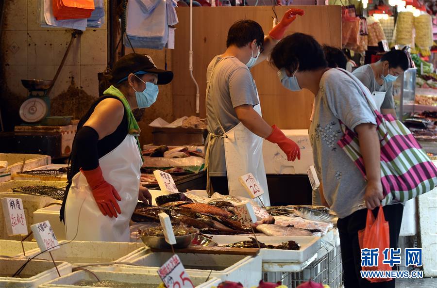 8月1日,市民在香港街頭購(gòu)買鮮魚(yú)。新華社記者盧炳輝攝