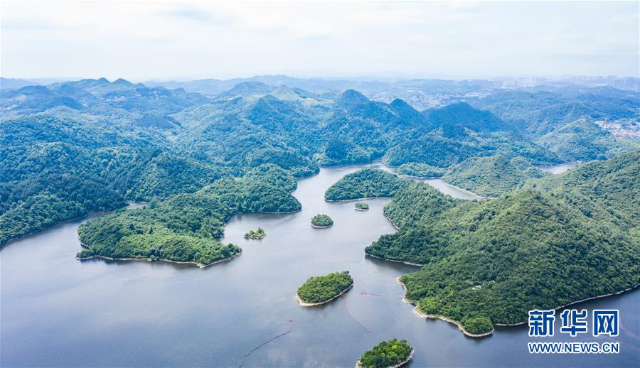 貴陽市阿哈湖國家濕地公園(無人機照片,6月2日攝)。新華社記者陶亮攝