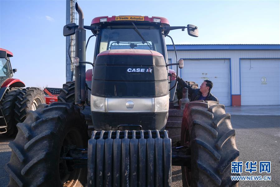 3月11日,農(nóng)民在吉林省榆樹市的一家農(nóng)業(yè)機械種植專業(yè)合作社內(nèi)檢修農(nóng)機。新華社記者顏麟蘊攝