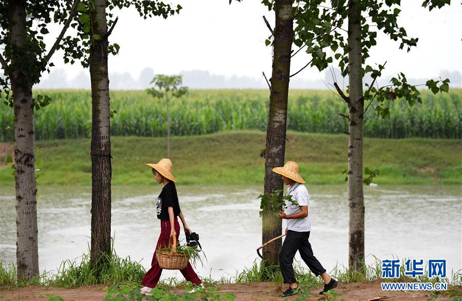 8月5日,王曉楠(左)與父親在河邊拍攝后準備回家。新華社記者郝源攝
