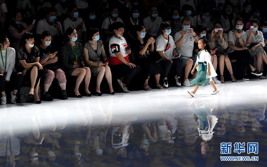 8月7日,小模特在T臺上展示童裝。當日,2020中國(河南)國際大學生時裝周舉行童裝設計專場展示。8月5日至7日,2020中國(河南)國際大學生時裝周在河南省新密市豫發(fā)密蘭小鎮(zhèn)舉行。新華社記者朱祥攝