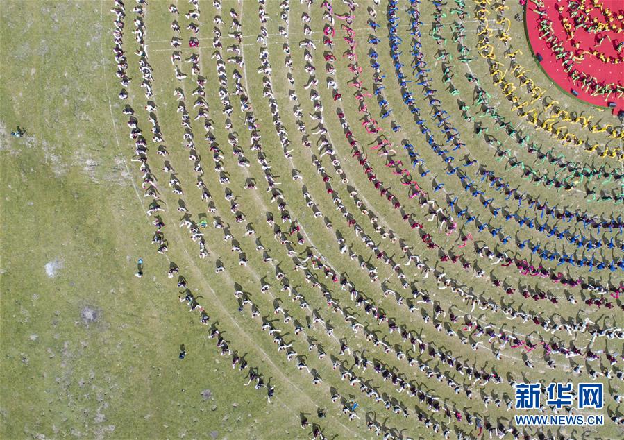西藏首屆弦子舞展演現(xiàn)場(chǎng)(8月7日攝,無(wú)人機(jī)照片)。當(dāng)日,西藏首屆弦子舞展演在昌都市芒康縣舉行。眾多演員同臺(tái)獻(xiàn)藝,表演國(guó)家級(jí)非物質(zhì)文化遺產(chǎn)弦子舞,吸引西藏各地的群眾前來(lái)觀看。新華社記者孫非攝