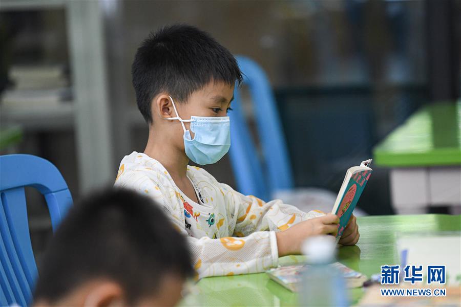 8月8日,小朋友在位于??诘暮D鲜D書館閱讀書籍。新華社記者 蒲曉旭 攝