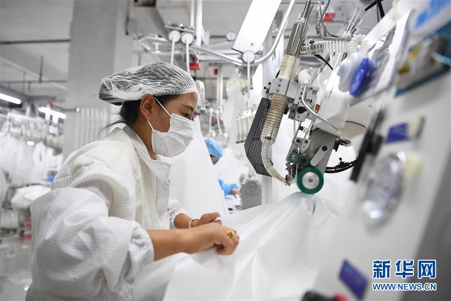 8月9日,甘肅拓奇扶貧車間的員工在服裝加工生產(chǎn)線上作業(yè)。甘肅拓奇扶貧車間位于甘肅省臨夏回族自治州積石山縣,是依托東西部扶貧協(xié)作平臺引進(jìn)的服裝加工企業(yè)。扶貧車間建成投產(chǎn)以來帶動(dòng)就業(yè)近300人,其中吸納建檔立卡貧困戶就業(yè)110人,實(shí)現(xiàn)了貧困群眾就地就近就業(yè)增收的目的,為助推當(dāng)?shù)孛撠毠?jiān)及縣域經(jīng)濟(jì)發(fā)展發(fā)揮了重要作用。新華社記者陳斌攝。