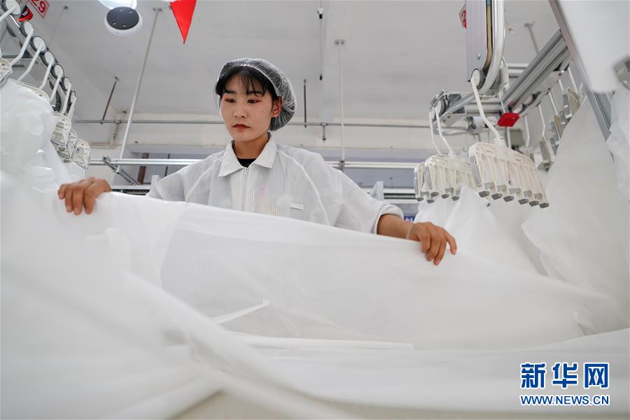 8月9日,甘肅拓奇扶貧車間的員工在服裝加工生產線上作業(yè)。甘肅拓奇扶貧車間位于甘肅省臨夏回族自治州積石山縣,是依托東西部扶貧協作平臺引進的服裝加工企業(yè)。扶貧車間建成投產以來帶動就業(yè)近300人,其中吸納建檔立卡貧困戶就業(yè)110人,實現了貧困群眾就地就近就業(yè)增收的目的,為助推當地脫貧攻堅及縣域經濟發(fā)展發(fā)揮了重要作用。新華社記者邢廣利攝。