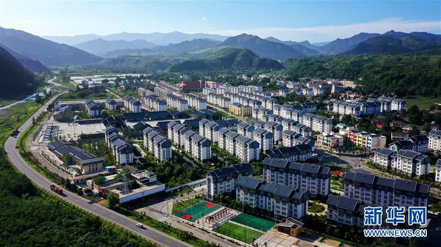 陜西洛南縣保安鎮(zhèn)倉(cāng)圣社區(qū)移民搬遷集中安置點(diǎn)(7月27日攝,無人機(jī)照片)。